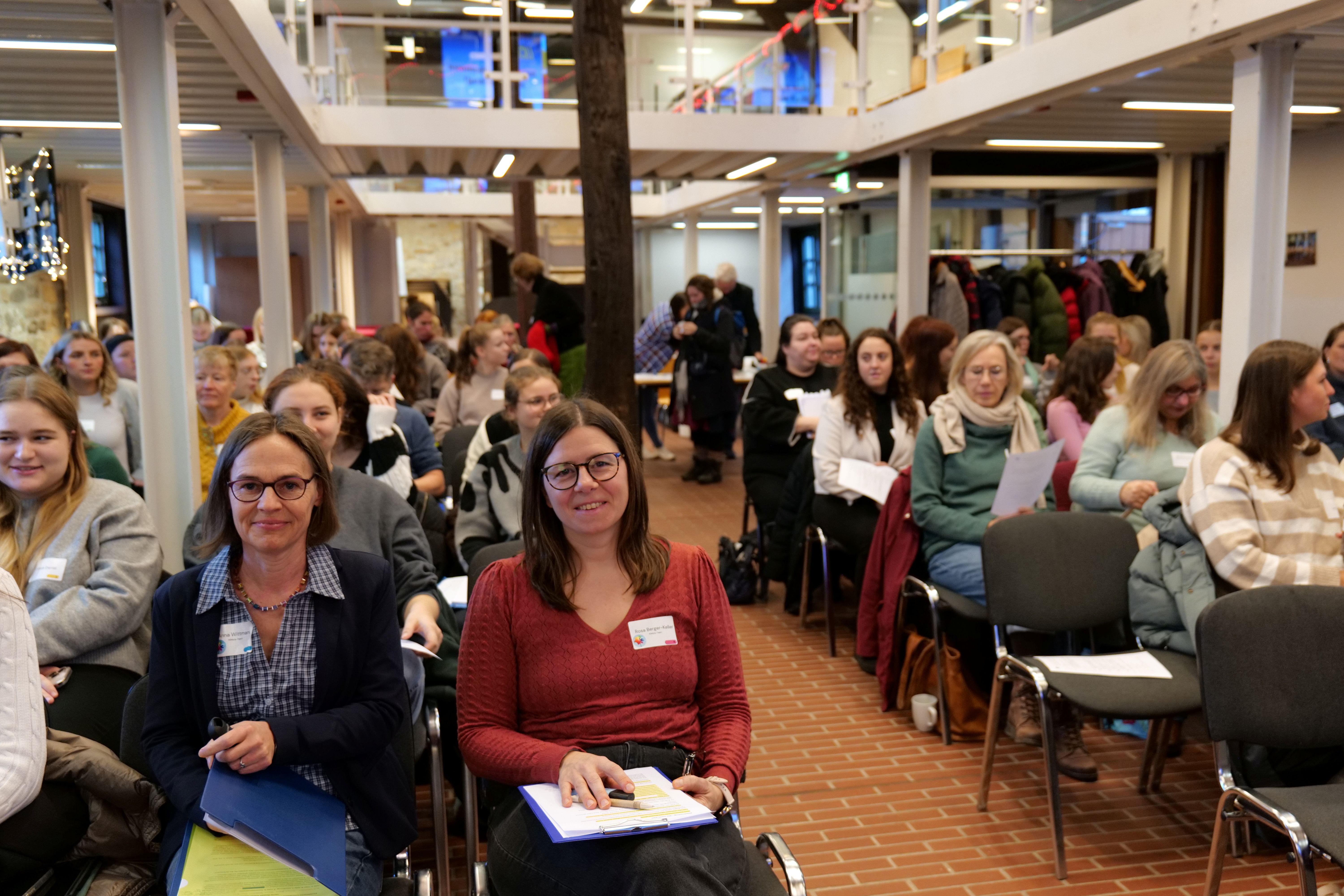 Die 80 Plätze des Fachtags waren im Handumdrehen vergeben, wobei mit 35 Personen die größte Gruppe der Teilnehmenden ehemalige Studierende waren, die die Studienvertiefung absolviert haben. Schon beim Ankommen entstand eine besondere Atmosphäre: warm, wertschätzend und getragen von einer spürbaren gemeinsamen Haltung. Die Energie und die „Leuchtkraft“ der Teilnehmenden haben den Raum erfüllt. Den bewegenden Hauptvortrag hielt an diesem Tag Claas Löppmann, ebenfalls Absolvent der HAWK und mittlerweile pädagogischer Leiter der kommunalen Kindertagesstätten der Stadt Walsrode sowie Mitglied im Betroffenenrat der Missbrauchsbeauftragten der Bundesregierung. Im Anschluss an den Vortrag, in den Workshops, der gemeinsamen Mittagspause und den Arbeitsrunden am Nachmittag gab es die Gelegenheit zum Austausch.