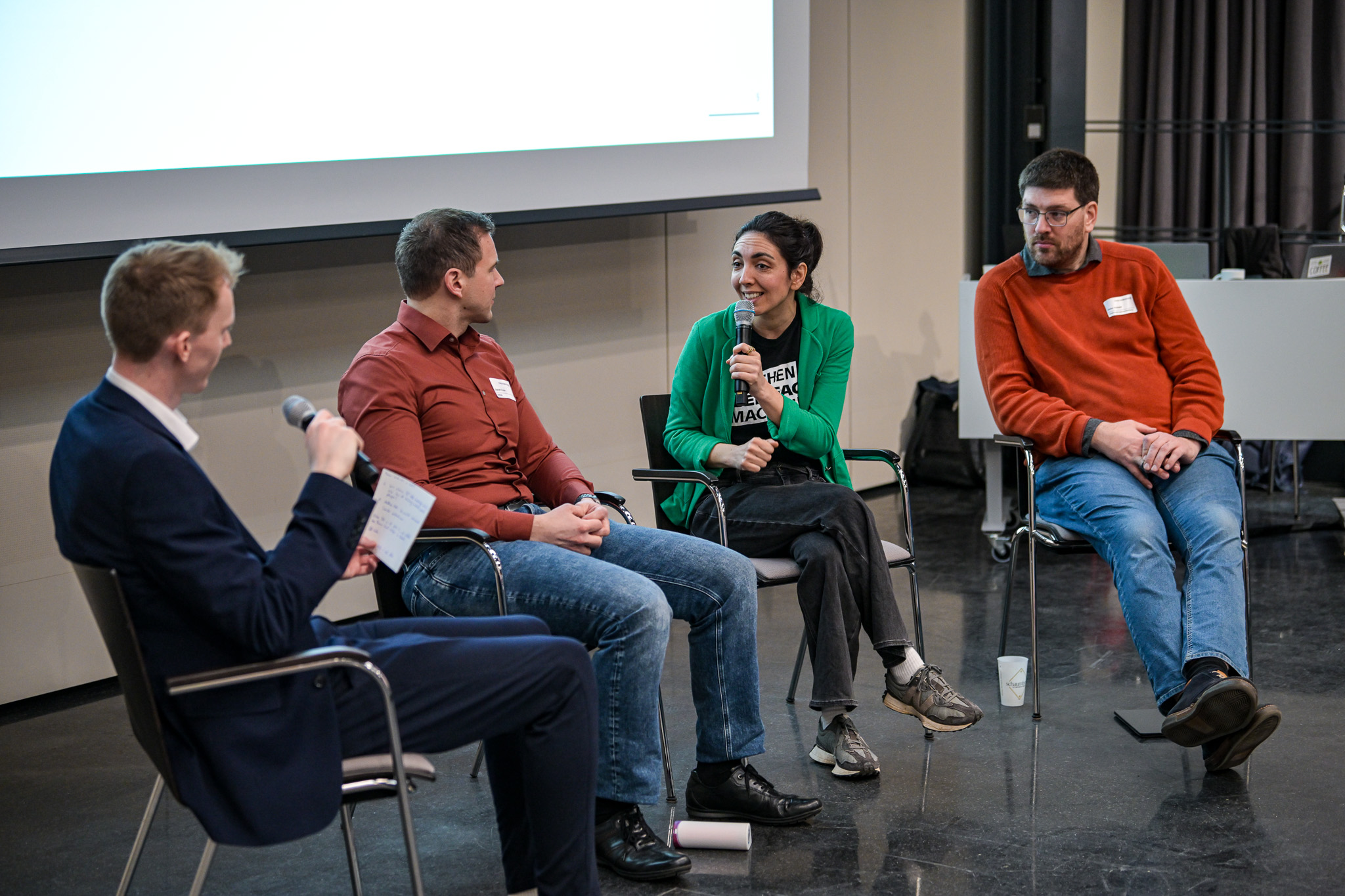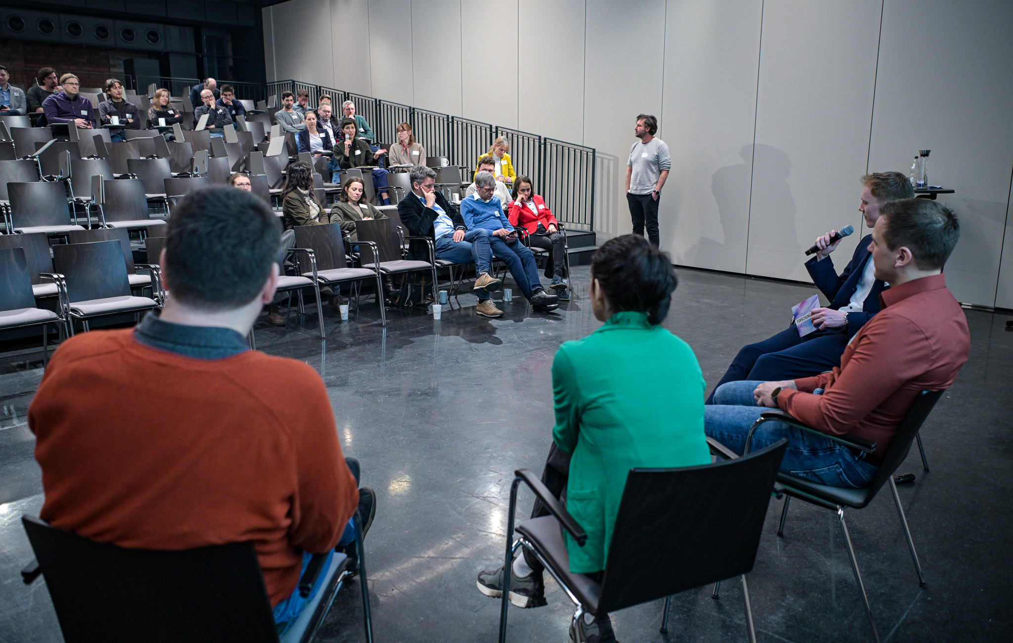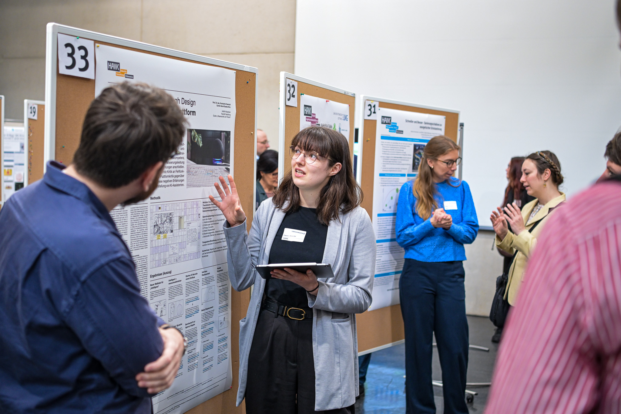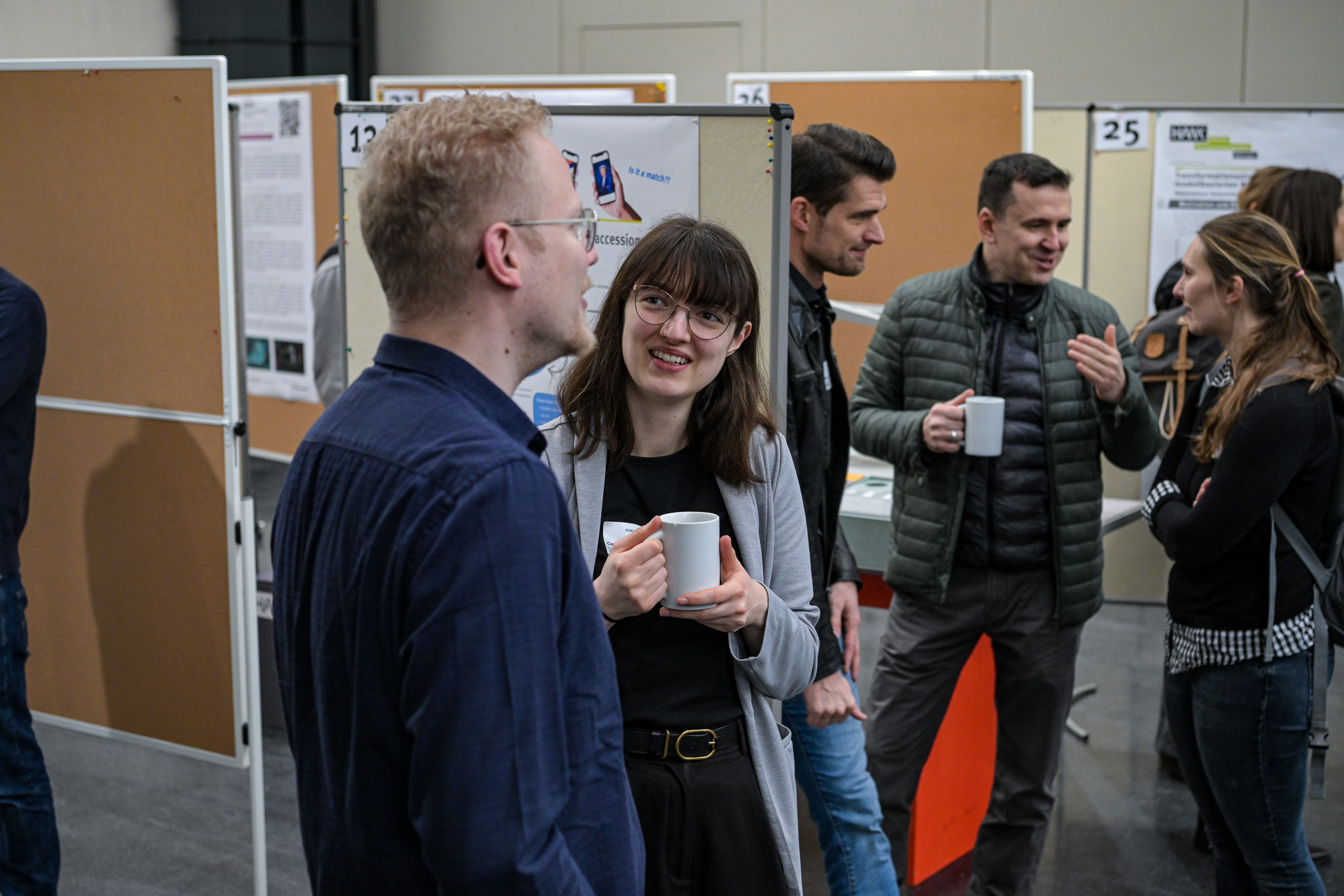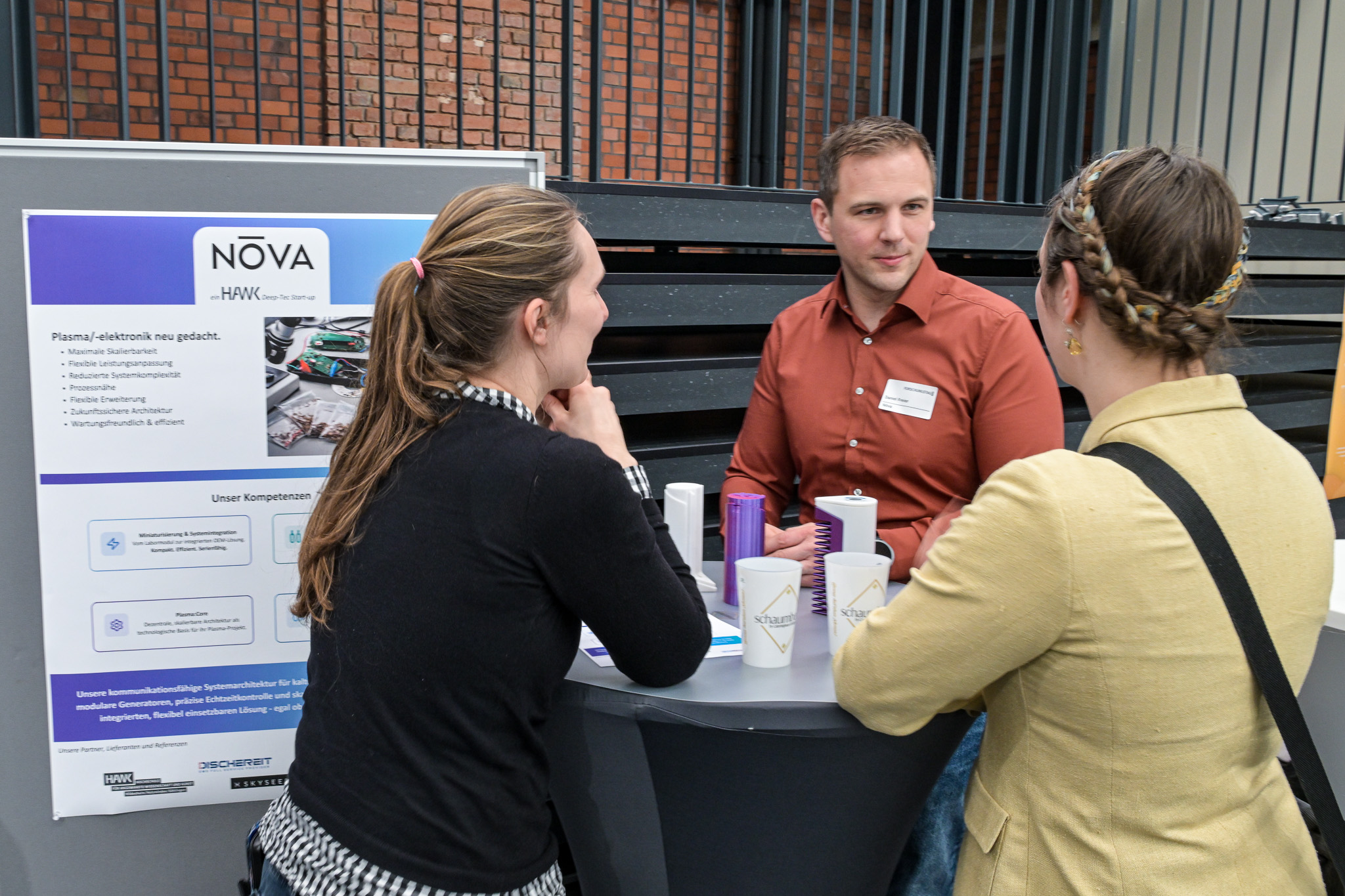 Passend dazu präsentieren sich neue und bewährte Formate: Beim Speed-Dating vernetzen sich Forschende in kurzen Gesprächen, um gemeinsame Vorhaben anzubahnen. Im KI-Café für Promovierende diskutieren sie Einsatzmöglichkeiten generativer KI und entwickeln erste Projektskizzen. Im Rahmen der Plenumsdiskussion „Ist das schon ein Produkt?“ diskutieren Expert*innen gemeinsam mit dem Publikum über den Weg von der Idee bis zum marktfähigen Produkt. Und auch die Podiumsdiskussion des HAWK-Netzwerks Genderforschung „Wege in die Genderforschung“ ist gut besucht.