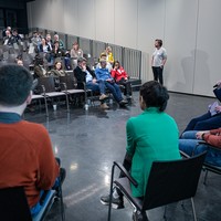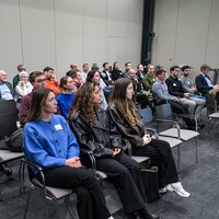 In der Sheddachhalle am Gesundheitscampus Göttingen sind fast alle Plätze besetzt. Rund 190 Teilnehmende nutzen den 3. Forschungstag der HAWK, um sich über aktuelle Projekte zu informieren und ins Gespräch zu kommen. Der Campus wird für einen Tag zum Schaufenster der angewandten Wissenschaft nach innen, mit Forschungspostern, Kurzvorträgen, Workshops und Start-up-Ideen.